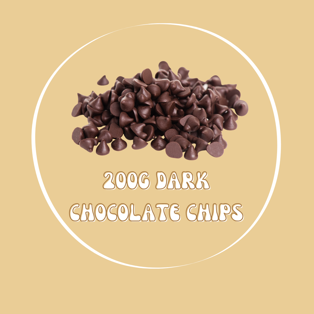 | Organic dark chocolate chips (200g). Perfect to add to any of our cookie mixes. Most delicious paired with Granola or Peanut Banana Protein cookie mixes for extra chocolatey goodness. |
